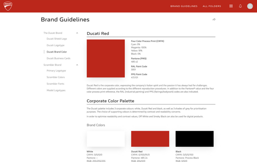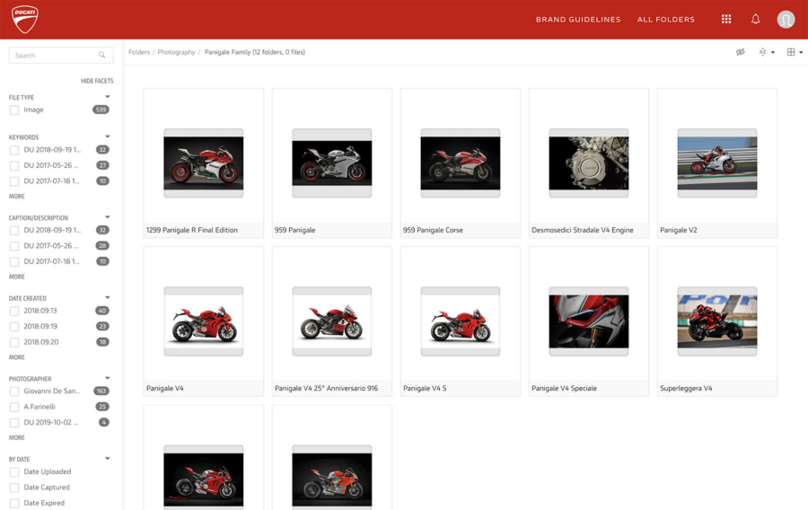 We worked closely with Ducati’s marketing department to strategically plan every aspect of the platform experience, from defining taxonomies and asset organization heirarchy, to user access roles, asset usage guidance, and creating interactive brand guidelines. The system reduced friction while preserving brand integrity.